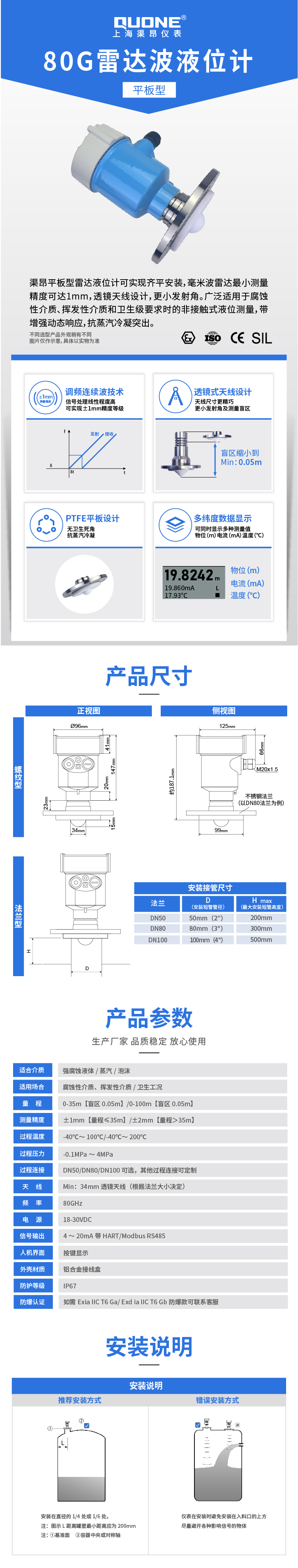 80G平板型雷达物位计